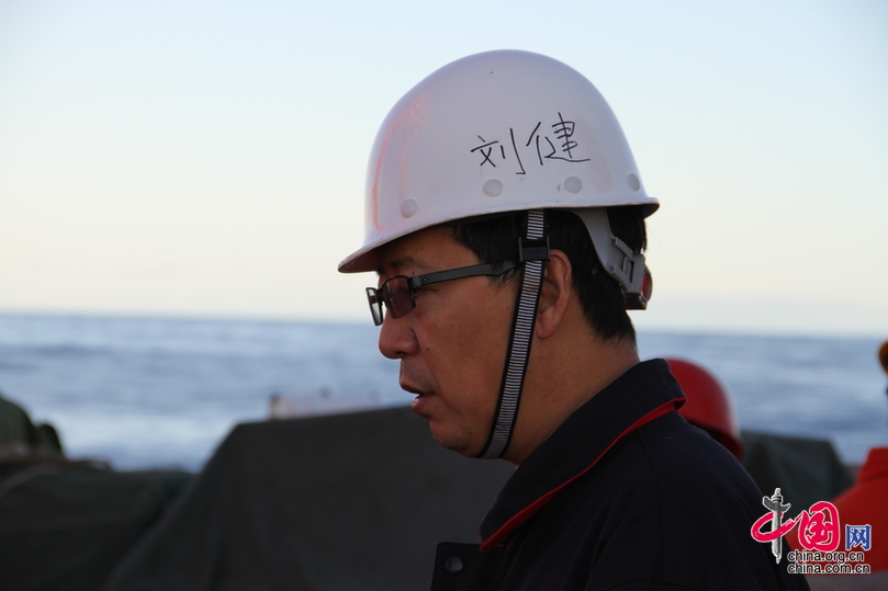 劉健在“潛龍二號(hào)”通過(guò)專家組驗(yàn)收后 在“向陽(yáng)紅10”船接受中國(guó)網(wǎng)記者采訪(攝影 林昂)