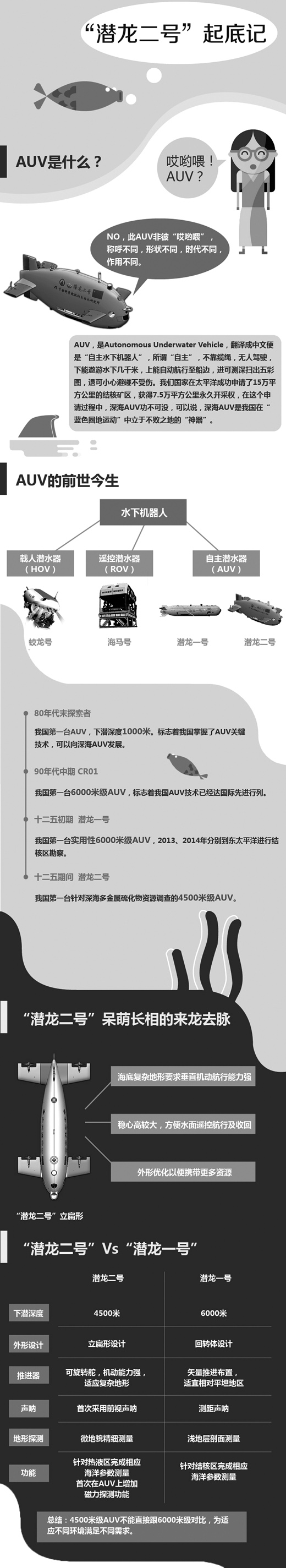 這不是一條普通的魚,它的全名叫4500米級(jí)深海資源自主勘查系統(tǒng)“潛龍二號(hào)”,這是我國(guó)首臺(tái)自主研發(fā)的4500米級(jí)自主水下機(jī)器人。這些天,在國(guó)際海底管理局與我國(guó)簽訂的多金屬硫化物勘探合同區(qū)——西南印度洋一片熱液區(qū)的海底,它按照預(yù)先設(shè)計(jì)的路線,首次堅(jiān)持了整整30個(gè)小時(shí)的全航程探測(cè),首次探測(cè)了海底山脈(即洋中脊)熱液區(qū),并獲得了精細(xì)的三維地形地貌數(shù)據(jù)和300多張高分辨率連續(xù)照片……實(shí)現(xiàn)了中國(guó)深??瓶嫉亩鄠€(gè)“首次”。