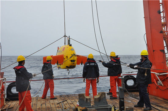 近日,由中國科學(xué)院沈陽自動化研究所作為技術(shù)總體單位研制的“潛龍二號”AUV圓滿完成了中國大洋第40航次試驗性應(yīng)用任務(wù)。在本次海上作業(yè)中,通過測深側(cè)掃聲吶水下實時信號處理技術(shù),“潛龍二號”實現(xiàn)了深海近海底高精細地形地貌快速成圖;通過熱液活動區(qū)熱液異常探測和近底光學(xué)探測,“潛龍二號”成功發(fā)現(xiàn)多處熱液異常點,并獲得了洋中脊近海底高分辨率照片300多張,取得我國大洋熱液探測的重大突破,為我國硫化物礦區(qū)的評估、進一步探測及科學(xué)研究提供了重要依據(jù)?!皾擙埗枴蔽髂嫌《妊笤囼炐詰?yīng)用的成功,填補了我國深海硫化物熱液區(qū)自主探測技術(shù)裝備的空白。