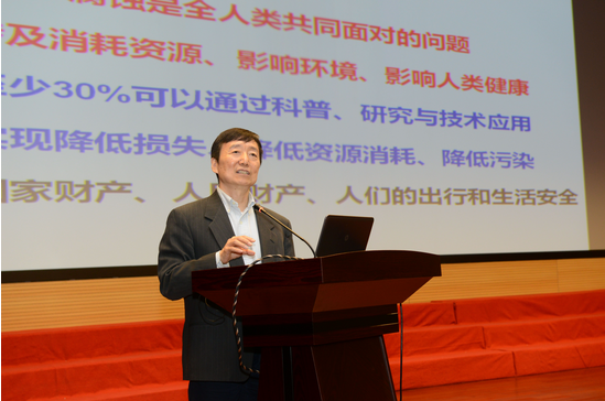 圖:世界腐蝕組織主席、中國科學院沈陽分院院長、金屬所韓恩厚研究員為前來參加活動的社會公眾作了題為“腐蝕—人類的重要課題”的報告,倡導人們要重視腐蝕問題,用科學的武器應對腐蝕。
