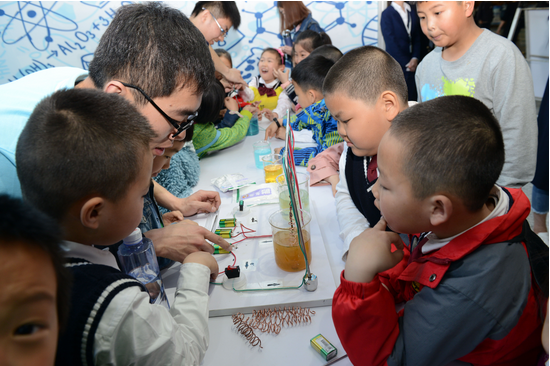 圖:趣味腐蝕現(xiàn)象的科普實驗吸引眾多小朋友駐足觀看