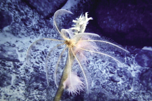 劉開周:淺海區(qū)生物還相對豐富,但是進(jìn)入深海區(qū)有點像荒漠,過很長時間才能看到飄過來的很少見的魚。有時候還能看到長得像植物似的動物,有的動物外形就像是盛開的百合花一樣美麗,有的像是一棵蒲公英。