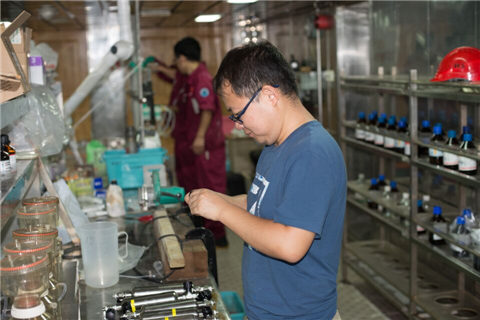 科研人員在船載實(shí)驗(yàn)室進(jìn)行樣品處理