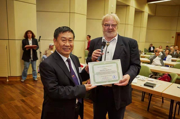 國際肥料科學中心現(xiàn)任主席埃瓦爾德·施努格先生為姬蘭柱書記頒發(fā)國際肥料科學中心第六任主席聘用證書 ? 由受訪單位提供?