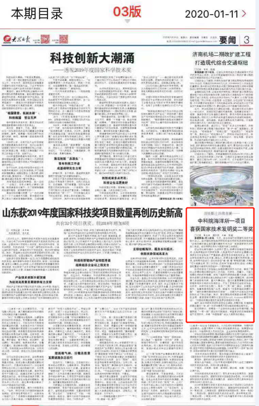 本報青島1月10日訊 今天,在北京舉行的國家科學(xué)技術(shù)獎勵大會上,由中國科學(xué)院海洋研究所俞志明研究員領(lǐng)銜完成的“近海赤潮災(zāi)害應(yīng)急處置關(guān)鍵技術(shù)與方法”榮獲國家技術(shù)發(fā)明獎二等獎。俞志明研究員作為獲獎代表上臺領(lǐng)獎。