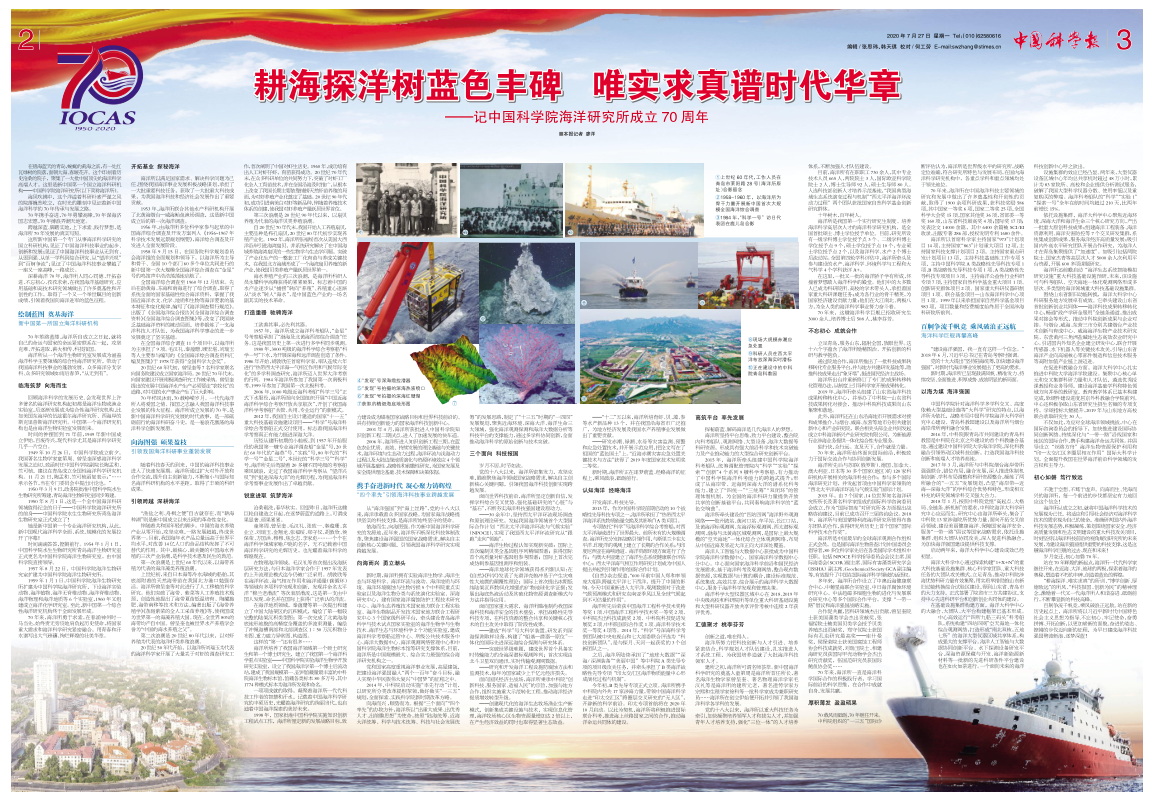 回望昨日,海洋所這艘巨輪自建造之日起,在逐夢(mèng)蔚藍(lán)的道路上,可謂成果顯著、碩果累累。