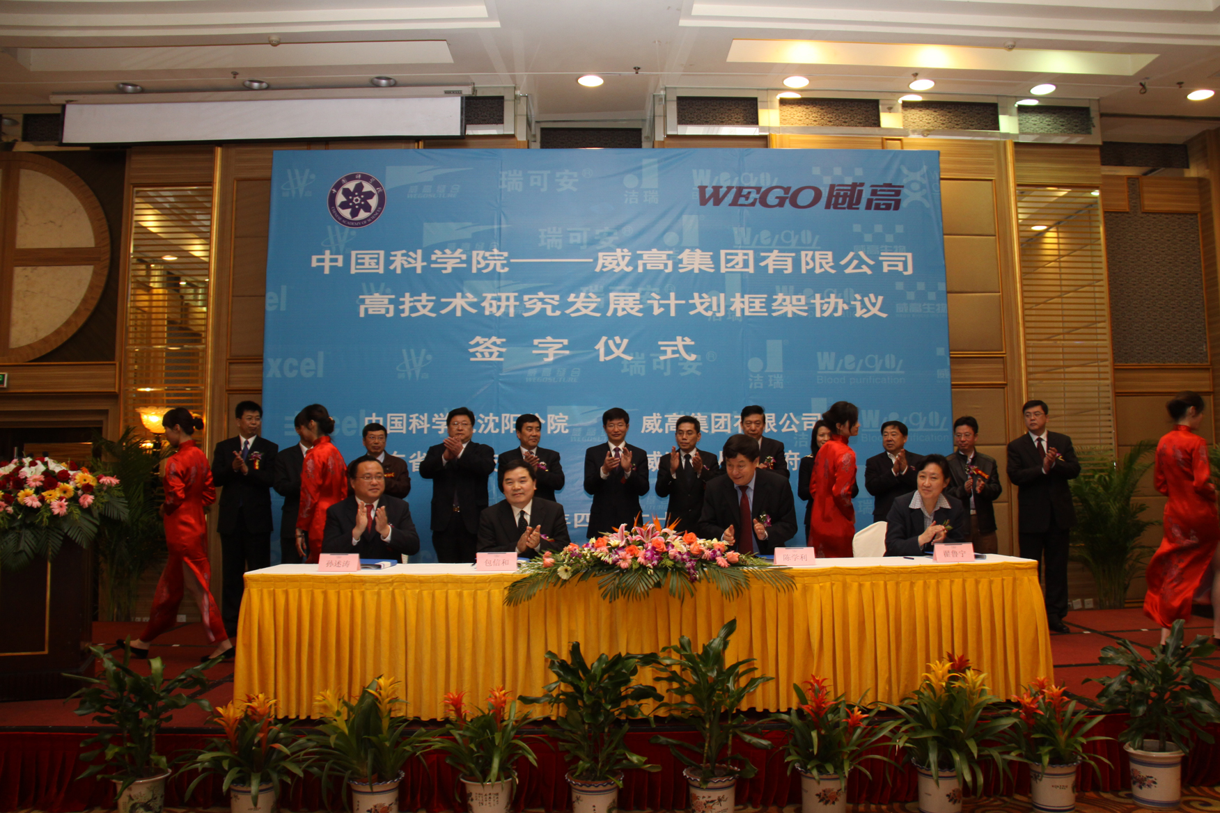 2010年4月29日,“中國科學院—威高集團有限公司高技術研究發(fā)展計劃”(簡稱“研發(fā)計劃”)框架協(xié)議簽字儀式在青島隆重舉行。中國科學院方面代表副院長施爾畏、高技術局副局長劉桂菊、沈陽分院院長包信和和副院長梁波、楊勝利院士、山東中心主任王曉斌,山東省方面代表副省長李兆前、科技廳廳長翟魯寧、省科學院黨委書記李海艦、威海市市長孫述濤、威高集團董事長陳學利等出席了簽約儀式。簽約儀式由威海市副市長董進友主持。