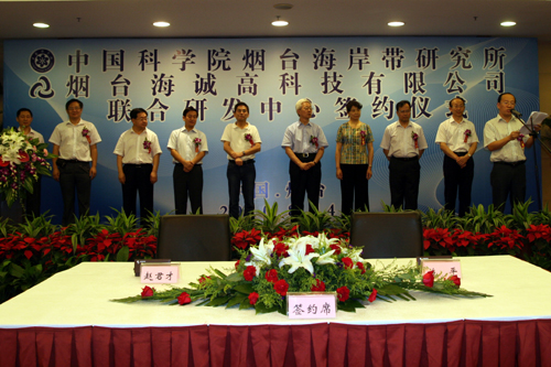中科院煙臺(tái)海岸帶研究所所長(zhǎng)施平、煙臺(tái)海誠(chéng)高科技有限公司董事長(zhǎng)趙君才分別代表雙方致詞,并簽署了《中國(guó)科學(xué)院煙臺(tái)海岸帶研究所與煙臺(tái)海誠(chéng)高科技有限公司成立聯(lián)合研發(fā)中心協(xié)議書(shū)》。雙方將本著資源共享、互惠互利、優(yōu)勢(shì)互補(bǔ)、共同發(fā)展、實(shí)現(xiàn)雙贏的合作原則,緊密結(jié)合市場(chǎng)需求,依托中科院煙臺(tái)海岸帶研究所的科研實(shí)力和人力資源,開(kāi)發(fā)具有市場(chǎng)潛力的、高技術(shù)含量的食品、環(huán)境等領(lǐng)域的分析檢測(cè)儀器、環(huán)境治理技術(shù)及產(chǎn)品。中科院煙臺(tái)海岸帶研究所與海誠(chéng)高科技有限公司的合作,將有效推動(dòng)產(chǎn)、學(xué)、研的緊密結(jié)合,促進(jìn)科研成果的市場(chǎng)轉(zhuǎn)化。
