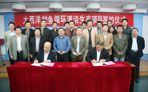 10月25日,“大西洋鮭魚封閉循環(huán)清潔生產(chǎn)項(xiàng)目”簽約儀式在海洋所舉行,山東東方海洋科技股份有限公司書記、副總經(jīng)理趙玉山、中科院海洋所張國(guó)范副所長(zhǎng)等20人參加了簽約儀式。