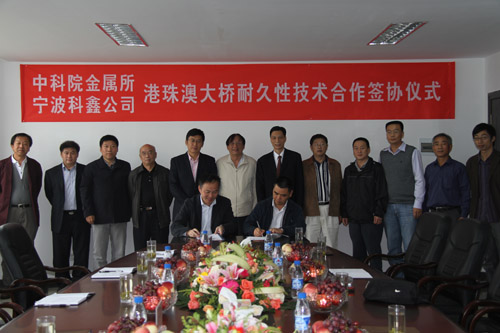 隨后,盧柯所長、柯偉院士等金屬所領(lǐng)導(dǎo)、專家還參觀考察了寧波科鑫公司(珠海)大橋防腐基地,并與科鑫公司簽訂了《港珠澳大橋耐久性防護(hù)項(xiàng)目合作協(xié)議》。