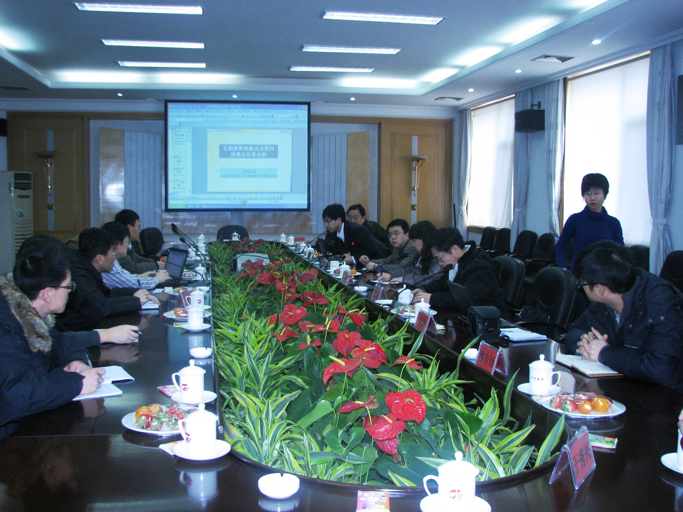 在威海白云公司,研究所科技人員與企業(yè)相關(guān)代表就藻類規(guī)模化培養(yǎng)、集中式生物燃?xì)獾瓤沙掷m(xù)生態(tài)工業(yè)園項(xiàng)目事宜進(jìn)行了深入的交流。