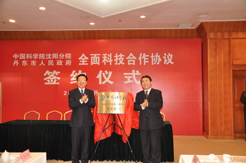 4月17日,中國(guó)科學(xué)院沈陽(yáng)分院與丹東市人民政府全面科技合作協(xié)議簽約儀式在丹東賓館隆重舉行。中國(guó)科學(xué)院院長(zhǎng)、黨組書(shū)記白春禮,丹東市委書(shū)記戴玉林在簽約儀式上講話并共同為中國(guó)科學(xué)院沈陽(yáng)國(guó)家技術(shù)轉(zhuǎn)移中心丹東中心揭牌。沈陽(yáng)分院院長(zhǎng)包信和,丹東市委副書(shū)記、市長(zhǎng)趙連生代表院市雙方在全面科技合作協(xié)議上簽字。簽約儀式由丹東市委副書(shū)記李樹(shù)民主持,沈陽(yáng)分院副院長(zhǎng)梁波代表雙方匯報(bào)了市院合作情況。