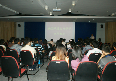 在生物樓學(xué)術(shù)報告廳,副所長馮埃生首先向前來參觀的同學(xué)們表示熱烈的歡迎,同時希望通過此項活動增進彼此之間的交流,使臺灣學(xué)子加深對祖國大陸科研工作及其他各方面工作的了解,并寄望海峽兩岸的青年學(xué)子攜起手來,共同為中華民族的繁榮富強貢獻出自己的力量。隨后,同學(xué)們觀看了我所簡介專題片。