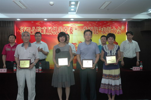 2012年6月25日下午,沈陽分院直屬機(jī)關(guān)黨委召開“一先兩優(yōu)”表彰大會(huì),對(duì)榮獲沈陽分院直屬機(jī)關(guān)黨委2011-2012年度的12個(gè)先進(jìn)黨支部(黨總支)、20名優(yōu)秀共產(chǎn)黨員和6名優(yōu)秀黨務(wù)工作者進(jìn)行表彰。分院直屬機(jī)關(guān)黨委委員、紀(jì)委委員、沈陽分院系統(tǒng)(沈陽地區(qū))各單位黨委書記、黨辦主任,受表彰的先進(jìn)黨支部(黨總支)負(fù)責(zé)人、優(yōu)秀共產(chǎn)黨員、優(yōu)秀黨務(wù)工作者以及分院機(jī)關(guān)的全體黨員參加了表彰會(huì)。