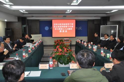 2012年11月28日,沈陽分院召開分院系統(tǒng)領(lǐng)導(dǎo)干部民主黨派科研骨干代表學(xué)習(xí)貫徹黨的十八大精神座談會。沈陽分院院長包信和、黨組書記、副院長馬思、副院長馬越紅,工程院院士封錫盛,沈陽分院直屬單位黨委委員、分院系統(tǒng)大連化物所、金屬所、沈陽應(yīng)用生態(tài)所、沈陽自動化所、煙臺海岸帶所、沈陽計算所公司、沈陽科儀公司等單位黨委書記、部分民主黨派負責人、無黨派代表人士和科研骨干代表等參加了座談會。