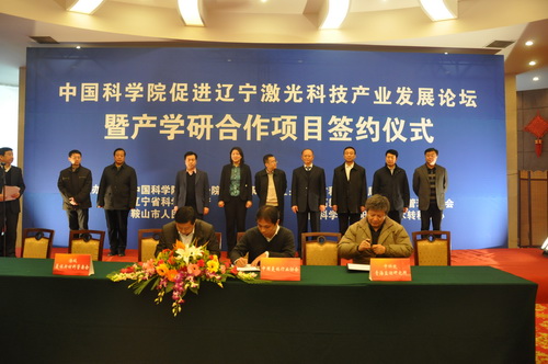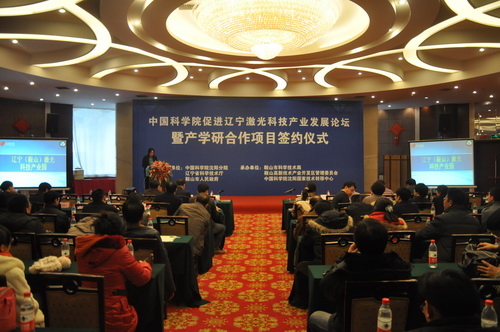 12月14日,中科院促進(jìn)遼寧激光科技產(chǎn)業(yè)發(fā)展論壇暨產(chǎn)學(xué)研合作項(xiàng)目簽約儀式在鞍山勝利賓館隆重召開。會議由中科院沈陽分院、遼寧省科技廳、鞍山市人民政府聯(lián)合主辦,沈陽分院副院長馬越紅、遼寧省科技廳副廳長孟慶海、鞍山市副市長張世超,中科院相關(guān)研究所、鞍山市科技局、發(fā)改委、財政局、高新區(qū)管委會、開發(fā)區(qū)管委會、海城市人民政府及相關(guān)企業(yè)代表100余人參加會議。