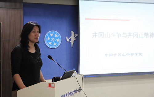 馬越紅作了《井岡山斗爭與井岡山精神》的主題報告,詳細介紹了井岡山斗爭重大事件、井岡山精神實質(zhì)和內(nèi)涵、新時期如何弘揚井岡山精神等,著重介紹了井岡山斗爭時期堅持黨的群眾路線取得的勝利,背離群眾路線遭受的失敗教訓,及其對于當前開展好黨的群眾路線教育實踐活動的歷史借鑒意義和現(xiàn)實參考價值。