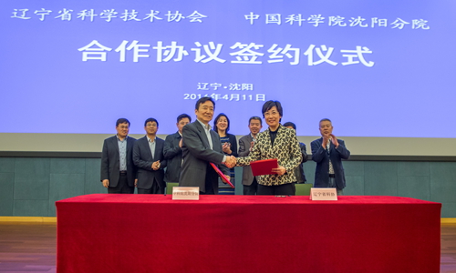 4月11日,中國(guó)科學(xué)院沈陽(yáng)分院與遼寧省科學(xué)技術(shù)協(xié)會(huì)全面科技合作協(xié)議在遼寧省科技館簽訂。沈陽(yáng)分院院長(zhǎng)韓恩厚、遼寧省科協(xié)黨組書(shū)記、副主席康捷代表雙方簽字。沈陽(yáng)分院副院長(zhǎng)馬越紅、省科協(xié)黨組副書(shū)記、副主席王元立、副主席朱玉宏、科技館館長(zhǎng)張英群等參加了簽約儀式。