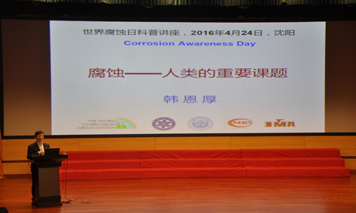 活動以“走進(jìn)腐蝕世界,營造健康生活”為主題,通過舉辦科普報告、“走進(jìn)腐蝕世界”科普展覽、“趣味腐蝕現(xiàn)象”系列科普實驗、科學(xué)體驗營、科普知識問答等活動,向社會各界展示腐蝕給我們的生活帶來的危害與便利,并學(xué)習(xí)如何控制腐蝕,提高腐蝕防護(hù)意識。活動中,世界腐蝕組織主席、中國科學(xué)院沈陽分院院長韓恩厚研究員為來自沈陽市第二中學(xué)、沈陽市第五中學(xué)、遼寧省實驗中學(xué)、東北育才學(xué)校、沈陽120中學(xué)、北京師范大學(xué)沈陽附屬學(xué)校師生及社會公眾400多人做了題目為“腐蝕--人類的重要課題”的精彩報告。報告生動地介紹了腐蝕問題與國民經(jīng)濟建設(shè)和國防建設(shè)息息相關(guān),我國每年由于腐蝕造成的經(jīng)濟損失約占國民生產(chǎn)總值(GDP)的5%,腐蝕不僅僅給國民經(jīng)濟造成巨大損失,還會對人們的安全、健康和生活質(zhì)量造成重大影響。同時腐蝕也是可以利用的,如電路板刻蝕中的應(yīng)用。報告中,韓恩厚研究員還向前來的市民介紹了一些像“含鹽、酸成分飯菜不宜用不銹鋼長期盛放”、“金屬器皿不能煎熬中藥”、“隔夜再開水龍頭流一會兒再食用”、“熱水器里的鎂棒需定時更換”等生活中應(yīng)用到的腐蝕防控的相關(guān)知識和小竅門。