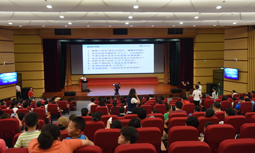 報告中,劉開周通過自己四年里7次深潛的經(jīng)歷,生動形象地與大家分享了奇妙的海底世界和一些鮮為人知的海試背后故事,緩緩掀起“蛟龍?zhí)?span lang="EN-US">”的神秘面紗。“中國‘蛟龍?zhí)?span lang="EN-US">’載人潛水器順利到達7062米深的海底,在世界載人深潛的榜首刻下了中國人的名字,是世界同類型載人潛水器的最大下潛深度,這是中國人的驕傲”,劉開周的報告不時贏得現(xiàn)場陣陣掌聲。報告結(jié)束后,劉開周與聽眾們進行了趣味互動,“地面與太空和深海對話時,哪種時間快” ?面對提出的問題,孩子們踴躍舉手回答,氣氛十分熱烈,其中也不乏一些家長給出了非常專業(yè)的答案。本次報告會使廣大學生開闊了眼界,增長了知識面,對于從小樹立熱愛科學的精神營造了良好的社會氛圍。