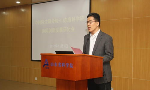為進(jìn)一步深化中科院沈陽分院與山東省科學(xué)院間的戰(zhàn)略合作,全面總結(jié)既往的合作成果,研究部署十三五期間的重點(diǎn)工作,12月7日,沈陽分院與山東省科學(xué)院在濟(jì)南共同舉辦了兩院協(xié)同創(chuàng)新發(fā)展研討會(huì)。山東省政協(xié)副主席翟魯寧,山東省人大常委李海艦,中科院科技促進(jìn)發(fā)展局副局長趙千鈞,沈陽分院院長韓恩厚,沈陽分院分黨組書記、副院長姬蘭柱,沈陽分院副院長馬越紅、分黨組副書記徐巖,山東省科學(xué)院黨委書記、院長王英龍,副院長于承建,副院長劉孟德,曾推進(jìn)兩院合作的部分領(lǐng)導(dǎo),山東省對外科技交流中心負(fù)責(zé)人,沈陽分院辦公室、組織人事處、科技合作處和山東省科學(xué)院院屬單位、機(jī)關(guān)處室負(fù)責(zé)人,第一、第二批兩院青年科學(xué)家伙伴小組入選人員等參加了會(huì)議。會(huì)議由劉孟德主持。