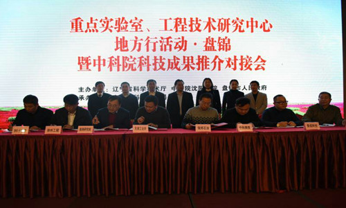 本次對(duì)接會(huì)上,中科院大連化物所、盤(pán)錦市人民政府、盤(pán)錦市雙臺(tái)子區(qū)人民政府簽署了共建“中科院大連化物所盤(pán)錦產(chǎn)業(yè)技術(shù)研究院”協(xié)議;中科院海洋所與盤(pán)錦泰成創(chuàng)新科技研究院有限公司、中科院沈陽(yáng)自動(dòng)化所與遼寧正時(shí)動(dòng)力有限公司、中科院天津工業(yè)生物技術(shù)研究所與遼寧陸海石油裝備研究院有限公司、沈陽(yáng)中科奧維科技股份有限公司與遼寧瑞邦石油技術(shù)發(fā)展有限公司簽署了“鹽地堿蓬人工栽培技術(shù)”、“微生物工業(yè)化裝置及技術(shù)研究”、“WIA-PA網(wǎng)絡(luò)技術(shù)與油田單井計(jì)量器融合”、“汽車(chē)發(fā)動(dòng)機(jī)正時(shí)系統(tǒng)用張緊器自動(dòng)裝配和在線檢測(cè)”4個(gè)項(xiàng)目簽約。