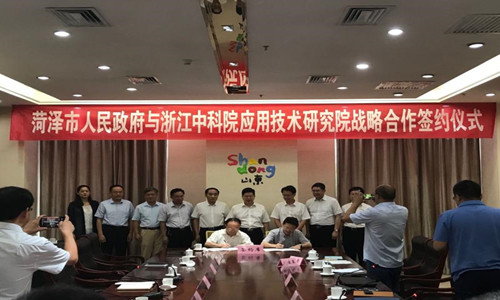 在中科院山東綜合技術轉化中心組織協(xié)調下,2018年8月14日,菏澤市人民政府與浙江中科院應用技術研究院戰(zhàn)略合作簽約儀式在菏澤舉行。菏澤市委副書記、市長陳平,菏澤市科技局等部門領導參加活動。
