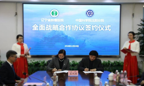 2018年12月20日,中國科學(xué)院沈陽分院與遼寧省腫瘤醫(yī)院全面戰(zhàn)略合作協(xié)議簽約儀式和學(xué)術(shù)研討會(huì)在沈舉行。中科院沈陽分院副院長馬越紅,中科院沈陽計(jì)算技術(shù)研究所有限公司總經(jīng)理馬躍,遼寧省腫瘤醫(yī)院黨委書記、院長樸浩哲,遼寧省衛(wèi)生健康委科教處處長張烜等出席了會(huì)議。會(huì)議由遼寧省腫瘤研究所所長、遼寧省腫瘤醫(yī)院副院長王丹波主持。