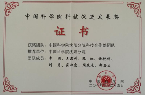 在1月17日召開的中國科學院年度工作會議上,繼剛剛榮獲2018年中國產(chǎn)學研合作促進獎后,沈陽分院科技合作處團隊喜獲2018年度中國科學院科技促進發(fā)展獎。