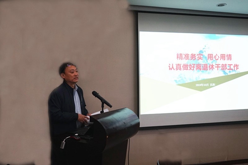 曹以玉以《精準(zhǔn)務(wù)實(shí),用心用情,認(rèn)真做好離退休干部工作》為題,從老干部工作歷史回顧、離退休工作思考與建議、離研會(huì)成立歷程、當(dāng)前離退休干部工作等四個(gè)方面,作了系統(tǒng)全面、生動(dòng)詳實(shí)、分析深刻的輔導(dǎo)報(bào)告,進(jìn)一步明確了離退休干部工作的政治屬性,明確了工作方法和工作要求,為當(dāng)前及今后一段時(shí)期離退休干部工作提供的根本遵循。