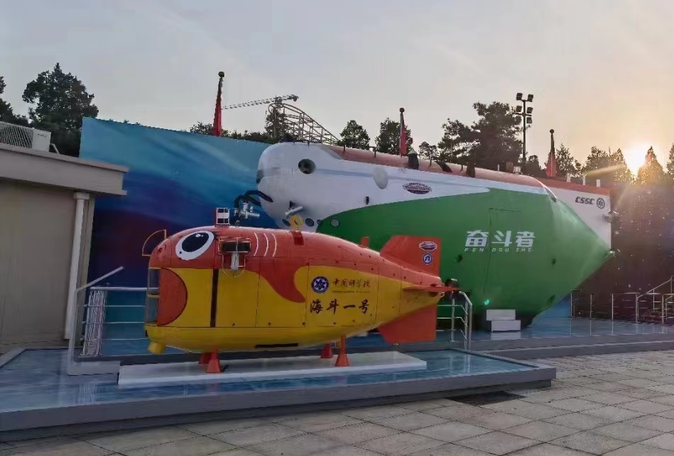 室外展區(qū)—— “海斗一號” 、“奮斗者”號(左一、左二)