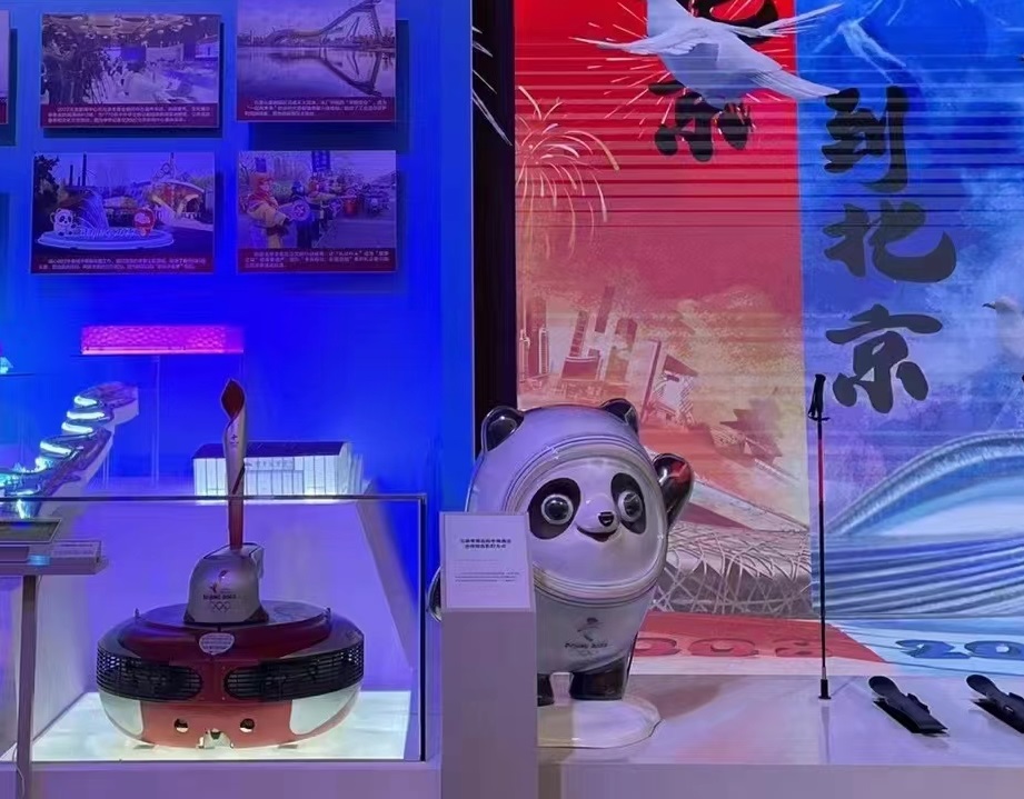 北京冬奧展區(qū)——北京冬奧會水下火炬?zhèn)鬟f機器人(圖中,冰墩墩左側)