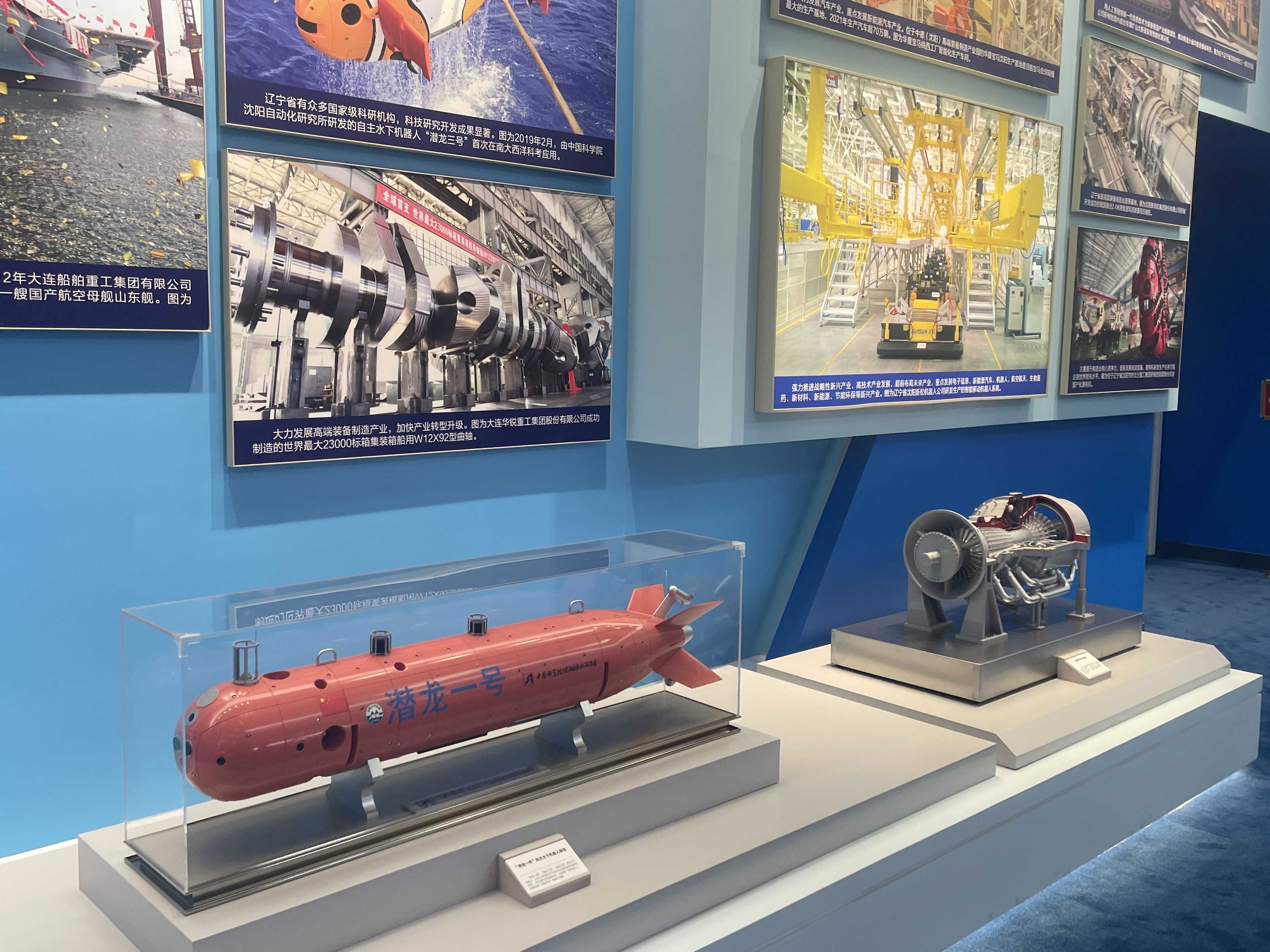 遼寧展區(qū)——“潛龍一號”、重型燃氣輪機(圖左及右)