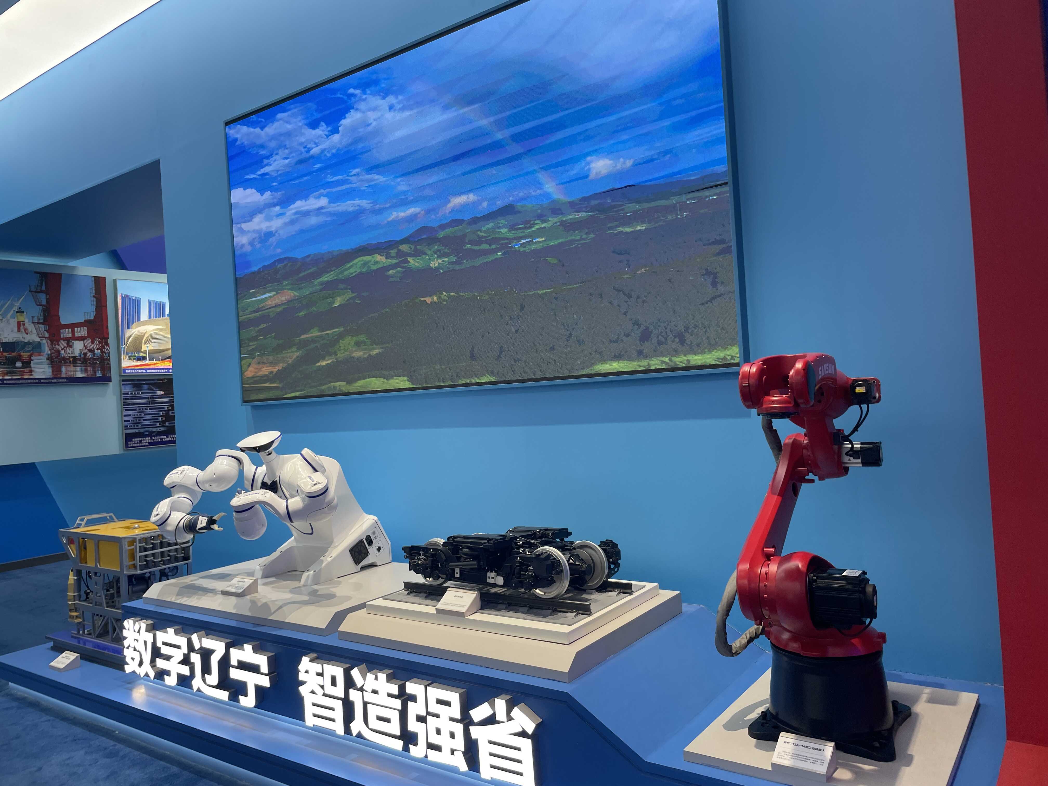 遼寧展區(qū)——“海星6000”有纜遙控水下機器人、新松雙臂協(xié)作機器人、高鐵轉向架、新松工業(yè)機器人(圖左及右)