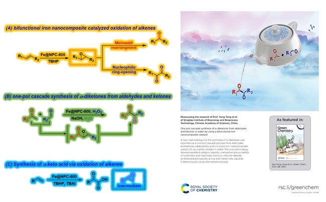 (2) One-Pot Cascade Synthesis of -Diketones from Aldehydes and Ketones in Water Catalyzed by A Bifunctional Iron Nanocomposite Catalyst. Green Chem. 2021, 23, 1955-1959. Tao Song, Xin Zhou, Xiaoxue Wang, Jianliang Xiao, Yong Yang* https://pubs.rsc.org/en/content/articlelanding/2021/gc/d0gc03739g#!divAbstract