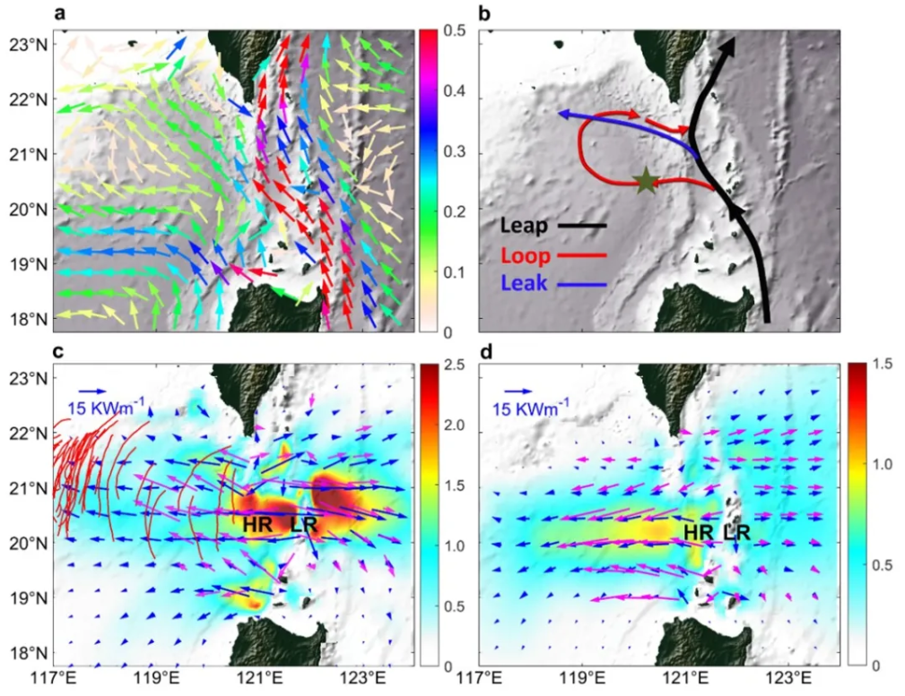 海洋多尺度動(dòng)力學(xué)及能量串級(jí)是物理海洋學(xué)前沿科學(xué)熱點(diǎn),其中大尺度環(huán)流與中小尺度內(nèi)波的動(dòng)力交互和能量串聯(lián)機(jī)制是重要難點(diǎn)之一。呂宋海峽不但是全球最強(qiáng)西邊界流之一――黑潮的必經(jīng)之路,也是全球內(nèi)潮能量最強(qiáng)盛海區(qū),因此成為研究海洋跨尺度動(dòng)力能量學(xué)的天然試驗(yàn)場(chǎng)。