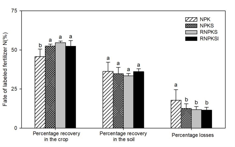 為了研究免耕秸稈覆蓋措施對黑土農(nóng)田肥料氮轉(zhuǎn)化過程和高效利用的調(diào)控機(jī)制,中國科學(xué)院沈陽應(yīng)用生態(tài)研究所農(nóng)業(yè)生態(tài)工程組和物質(zhì)循環(huán)組研究團(tuán)隊依托于吉林省四平市梨樹縣的保護(hù)性耕作試驗基地的長期定位試驗,利用15N穩(wěn)定同位素示蹤技術(shù),系統(tǒng)研究了免耕不同量秸稈覆蓋還田條件下,肥料氮在土壤不同形態(tài)氮庫的轉(zhuǎn)化特征及其利用效率。研究結(jié)果發(fā)現(xiàn):