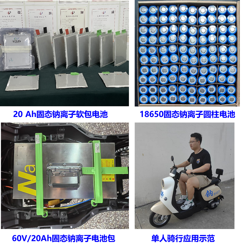 基于上述研究基礎(chǔ)和技術(shù)積累,經(jīng)過十余年的努力,崔光磊研究員帶領(lǐng)的固態(tài)能源系統(tǒng)技術(shù)中心成功研制出低成本、高安全、高性能的固態(tài)鈉離子電池。目前研發(fā)的固態(tài)鈉離子電池電芯能量密度超140 Wh/kg,電池模組比能量密度超110 Wh/kg;具有超高安全性,可以通過針刺測試,不冒煙、不燃燒、不爆炸,已實現(xiàn)在二輪電動車的示范應(yīng)用(圖2)。未來,該團(tuán)隊將按照不同應(yīng)用場景,重點瞄準(zhǔn)低速電動車、新能源汽車48 V電源系統(tǒng)、家庭儲能等領(lǐng)域,持續(xù)開發(fā)滿足市場系列鈉離子電池關(guān)鍵材料和核心技術(shù)。