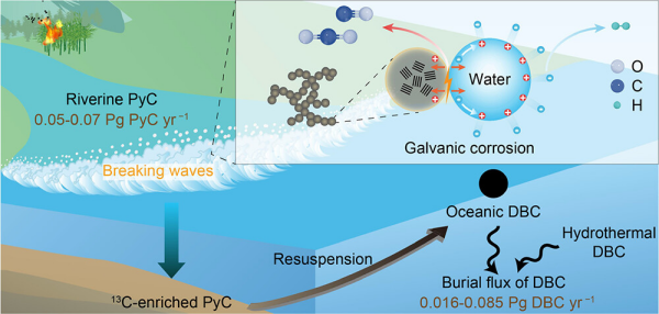 生物質(zhì)(秸稈、草原、森林等)每年通過不完全燃燒生成約2.6億噸的碳,其中約三分之一的碳通過河流和大氣運輸進入海洋,具有巨大的長期碳匯潛力。但是由于在海洋環(huán)境中仍存在未知的降解過程,該火成碳對海洋碳匯的貢獻還有待進一步研究。理解海水與火成碳之間的化學作用機制,對尋求碳中和的海洋路徑具有重要意義。