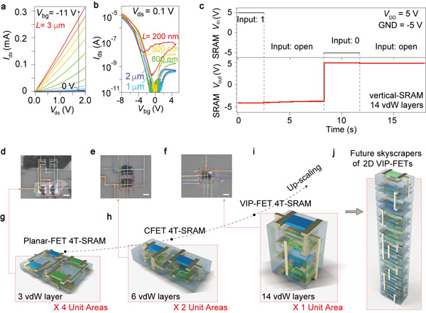 二維半導(dǎo)體“向上”集成互補(bǔ)型邏輯電路SRAM原型器件的實(shí)現(xiàn)
