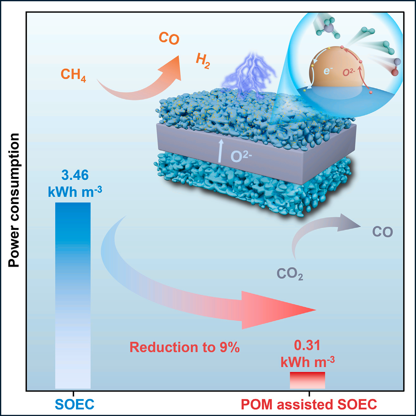 SOEC因其電解效率高,穩(wěn)定性好,模塊化程度高等優(yōu)勢,被認為是一種具有應(yīng)用潛力的CO2電解器件。在SOEC陽極以甲烷半氧化重整反應(yīng)(POM)替代緩慢的析氧反應(yīng)(OER),有利于降低CO2電解總能耗。然而,傳統(tǒng)的鈣鈦礦陽極材料甲烷重整活性低、穩(wěn)定性差,因此設(shè)計高活性陽極甲烷重整催化劑具有重要意義。