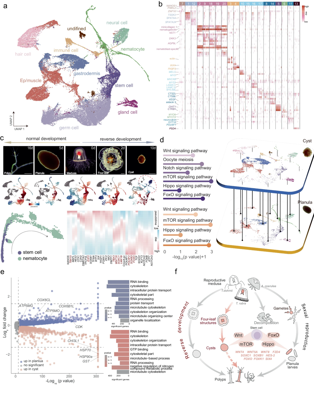 燈塔水母不同發(fā)育階段細(xì)胞圖譜及逆向發(fā)育細(xì)胞和基因基礎(chǔ)
