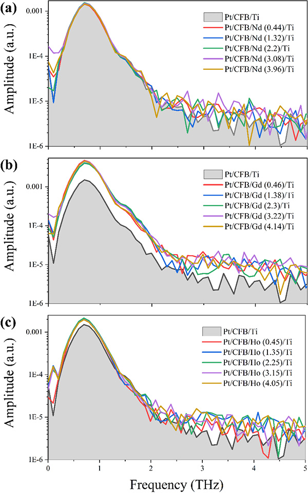 圖4. Pt/CoFeB/RE/Ti結(jié)構(gòu)的頻譜圖對比。