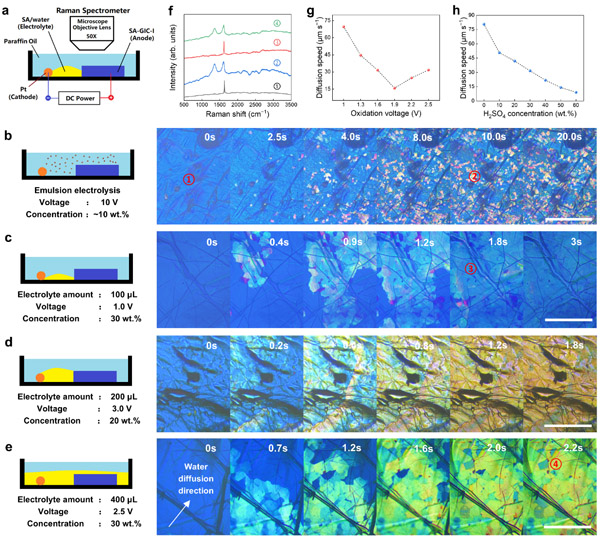 圖2. 電解水制備GO過程中水?dāng)U散行為的原位研究
