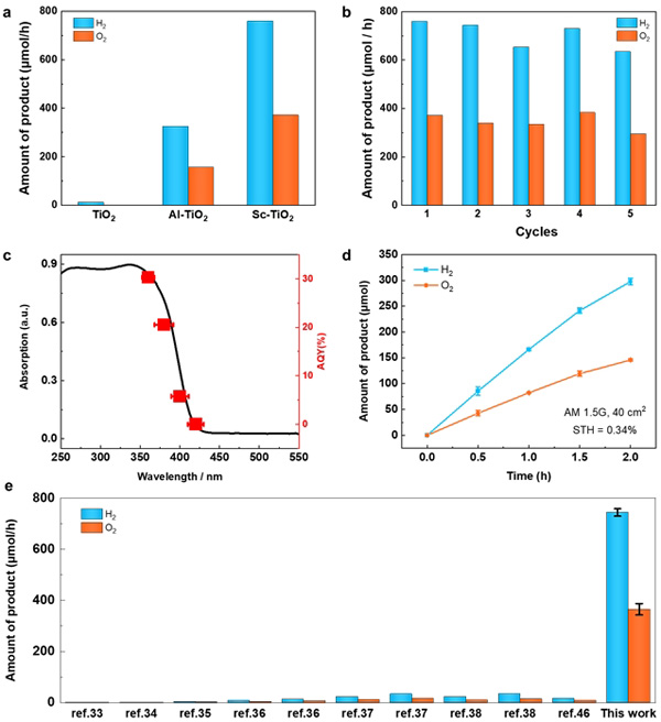 圖3. Sc摻雜金紅石TiO?的光催化全分解水性能