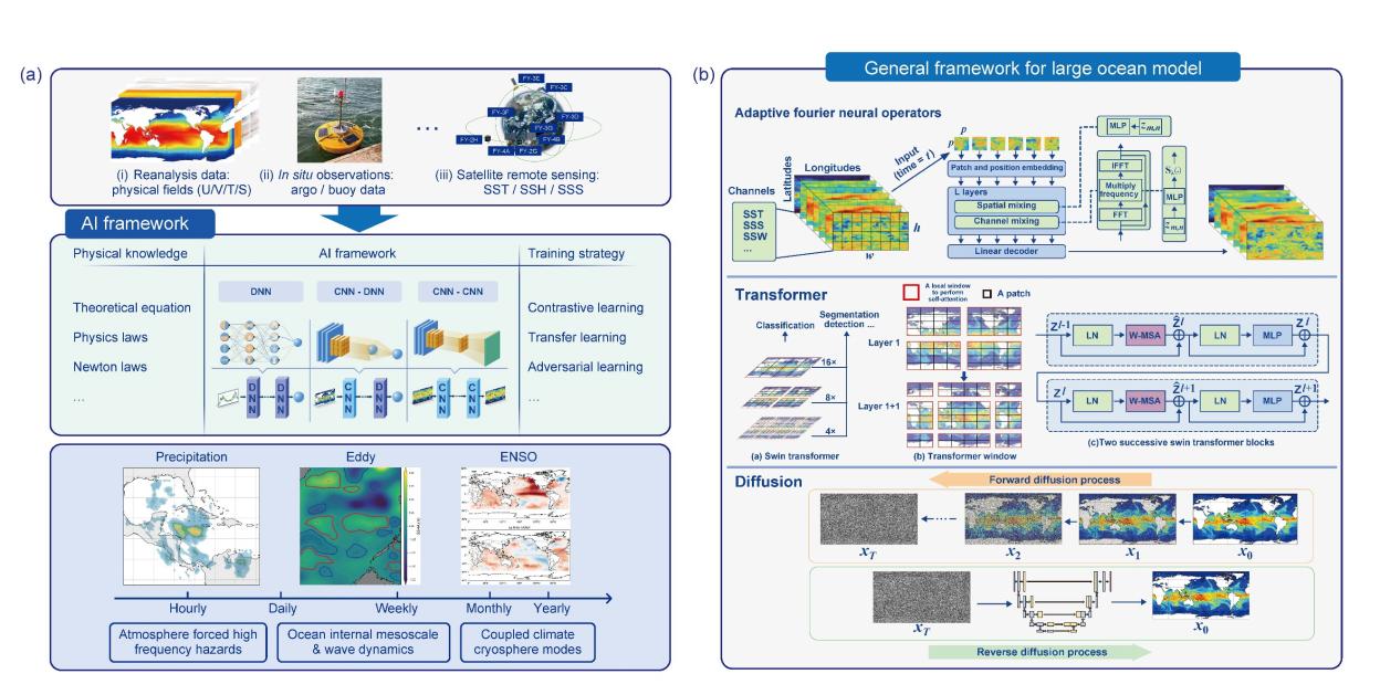 近日,中國科學(xué)院海洋研究所李曉峰研究員和王凡研究員領(lǐng)銜在海洋現(xiàn)象智能預(yù)報方法體系研究方面取得重要進展。研究系統(tǒng)梳理了海洋狀態(tài)變量(Ocean State Variables, OSV)預(yù)報與海洋現(xiàn)象(Ocean Phenomena, OP)預(yù)報的概念框架、研究進展及其內(nèi)在聯(lián)系,并圍繞不同時間尺度和主導(dǎo)物理驅(qū)動機制,總結(jié)了人工智能在海洋現(xiàn)象預(yù)報中的應(yīng)用進展與發(fā)展趨勢,進一步展望了面向海洋現(xiàn)象預(yù)報的大型海洋模型(Large Ocean Model, LOM)發(fā)展方向,為發(fā)展現(xiàn)象級預(yù)報的瑯琊大模型2.0奠定理論基礎(chǔ)。相關(guān)成果發(fā)表于Science Bulletin。