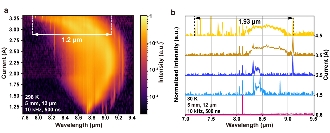 該成果成功攻克了單有源區(qū)QCL譜寬受限的關(guān)鍵難題,為構(gòu)建面向中紅外頻率梳、高精度寬光譜傳感、成像及自由空間通信的集成化高效光源開辟了新途徑。