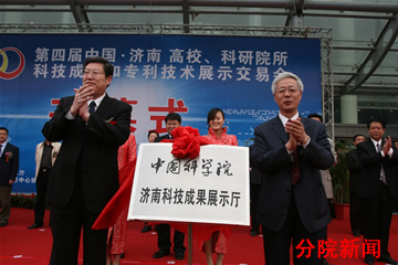 王慶禮院長(zhǎng)應(yīng)邀在開(kāi)幕式致辭。戚強(qiáng)局長(zhǎng)與濟(jì)南市人民政府市長(zhǎng)張建國(guó)共同為常設(shè)濟(jì)南的“中國(guó)科學(xué)院科技成果展示廳”揭牌。
