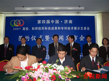 會(huì)議期間,舉行了合作項(xiàng)目簽約儀式。兩院中心與濟(jì)南平陰縣政府就“玫瑰產(chǎn)業(yè)綜合開(kāi)發(fā)”、沈陽(yáng)計(jì)算公司與山東省計(jì)算中心、山東法因數(shù)控有限公司就“高檔數(shù)控國(guó)產(chǎn)化開(kāi)發(fā)”分別簽訂了合作協(xié)議。為確保簽約項(xiàng)目得到轉(zhuǎn)化實(shí)施,濟(jì)南市政府將安排2000萬(wàn)元專項(xiàng)資金擇優(yōu)扶持。