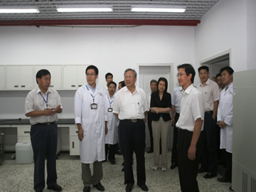 中國科學(xué)院辦公廳主任蔣協(xié)助、院地合作局局長戚強、沈陽分院院長包信和、高技術(shù)研究與發(fā)展局副局長劉桂菊、生命科學(xué)與生物技術(shù)局副局長蘇榮輝、蘭州化學(xué)物理研究所所長劉維民,青島市人大常委會副秘書長紀(jì)高尚、青島市科技局局長王安民,研究所籌建組組長王利生、副組長趙汐潮、魏東芝、彭輝陪同視察。